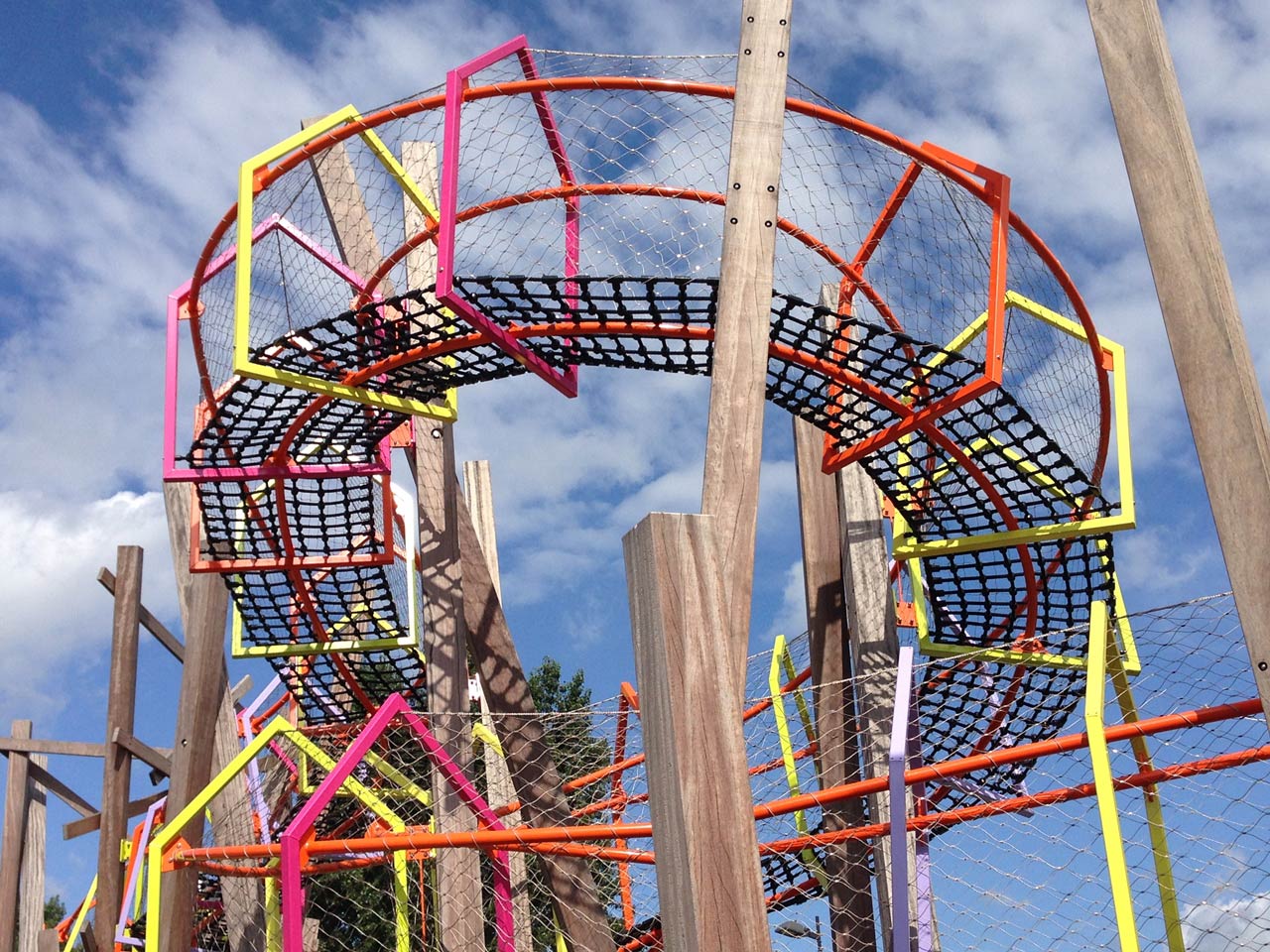 Deze mooie speelslinger is ontworpen door Carve en is te vinden in het Oosterpark in Amsterdam. De flexibele kabelnetten volgen de lijnen van het speeltoestel.