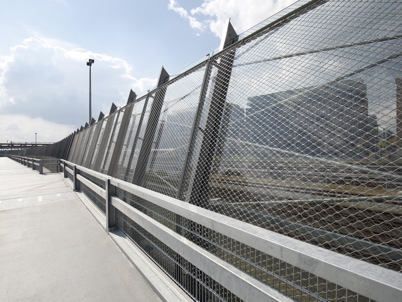 Slingerstaf kan rechtstreeks aan het staalwerk gelast worden en samen met de constructie gepoedercoat worden. Hierdoor ontstaat een strakke detaillering en de netten kunnen hier ideaal aan bevestigd worden. Deze detaillering versneld de montagetijd op locatie. Ook is dit een geschikt om vingerbeknelling te voorkomen.